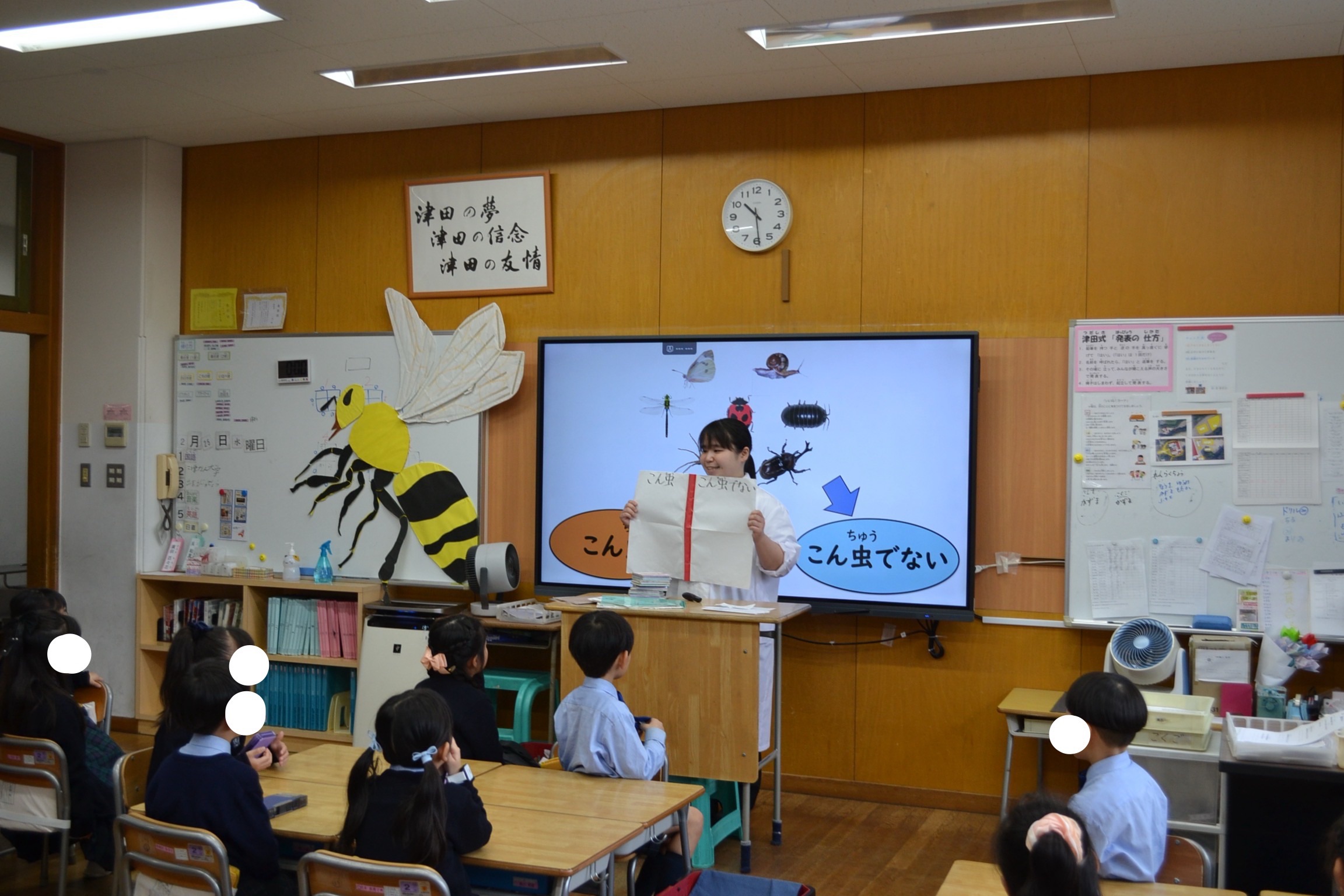 2026年2月25日、津田学園小学校1年生を対象に、生活科の出前講座を実施しました。皇學館大学教育学部生物学・理科教育学研究室の大学生が各班に入り、活動のサポートを行いながら児童との交流を深めました。
